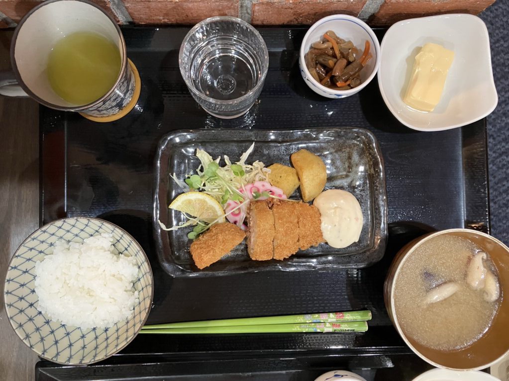 さらさ秋田土崎の夕食です。サクサクのサーモンフライにタルタルソースが付き、ご飯と相性抜群です。生野菜もシャキシャキしていて、美味しかったという方多くいらっしゃいました。